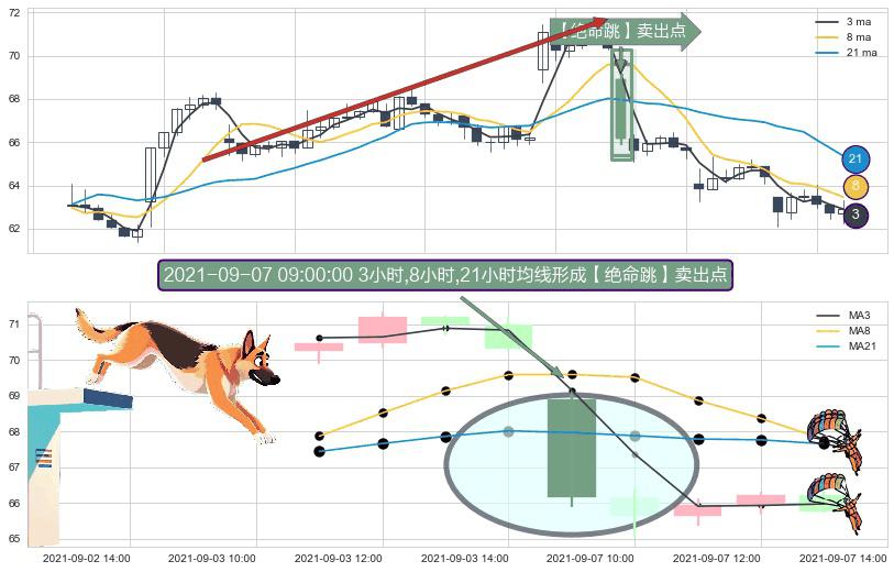 ⚀ 2021-09-07 09:00:00小时显现 3小时-8小时-21小时均线 【绝命跳】卖出点 看空信号,后市看跌,卖出