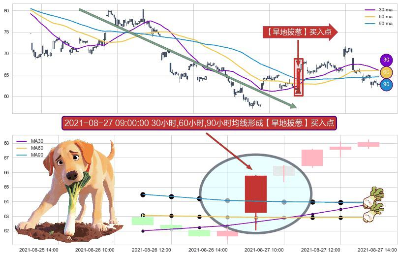 ⚀ 2021-08-27 09:00:00小时显现 30小时-60小时-90小时均线 【旱地拔葱】买入点 看多信号,后市看涨,买入