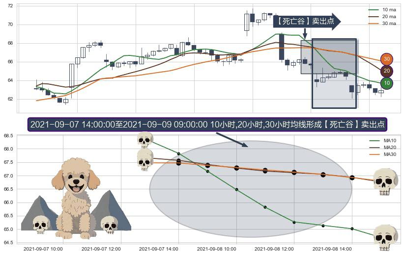 ⚀ 2021-09-08 09:00:00-小时至2021-09-09 09:00:00-小时显现 10小时-20小时-30小时均线 【死亡谷】卖出点 看空信号,后市看跌,卖出