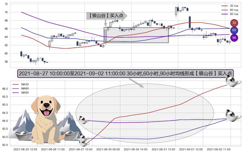 ⚀ 2021-08-27 11:00:00-小时至2021-09-02 11:00:00-小时显现 30小时-60小时-90小时均线 【银山谷】买入点 看多信号,后市看涨,买入