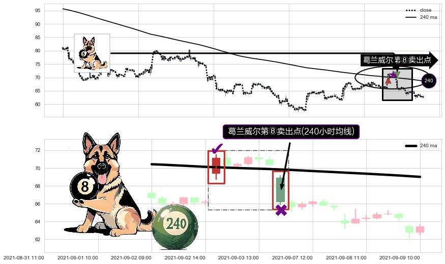 ⚀ 2021-09-07 09:00:00-小时显现 葛兰威尔均线 240小时均线 第⑧卖出点 下降趋势的中继信号,后市看跌,卖出信号