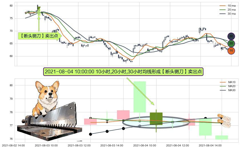 ⚀ 2021-08-04 10:00:00小时显现 10小时-20小时-30小时均线 【断头铡刀】卖出点 看空信号,后市看跌,卖出