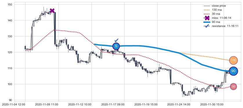 ⚅ 短期均线MA30上穿中期均线MA90形成的交叉是普通交叉并非 黄金交叉