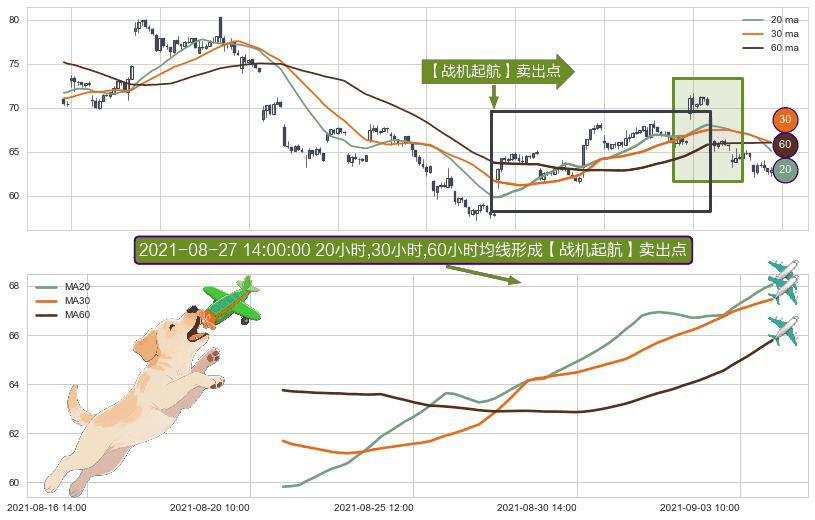 ⚀ 2021-08-20 14:00:00小时-2021-09-03 14:00:00小时显现 20小时-30小时-60小时均线 【战机起航】卖出点 看空信号,后市看跌,卖出