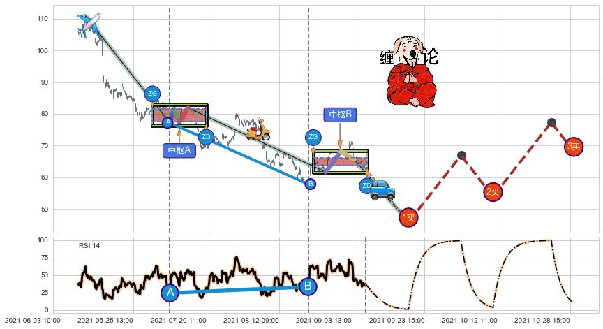 ➢ 缠论价格B点比A点低 ⤵,【RSI】指标B点比A点高 ⤴️