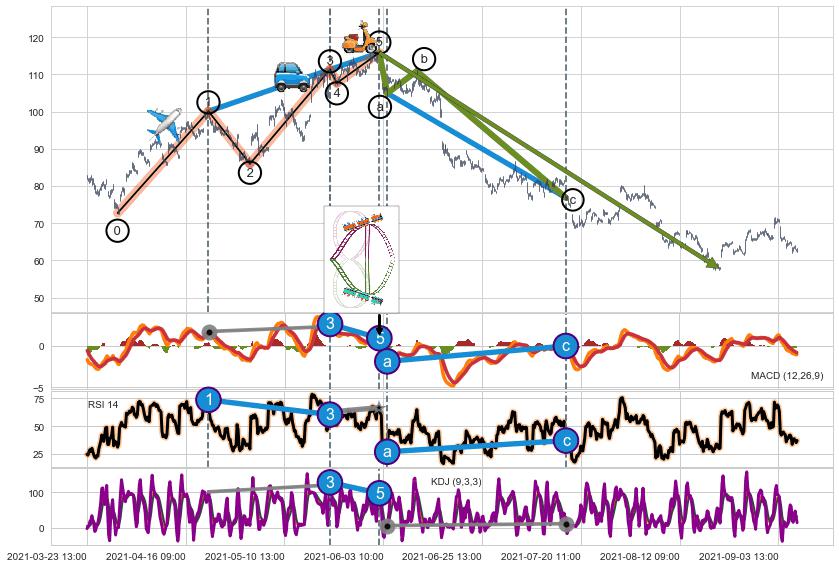 ➣ 1,3,5驱动浪MACD, RSI, KDJ走势都出现【常规背离】反转信号增强