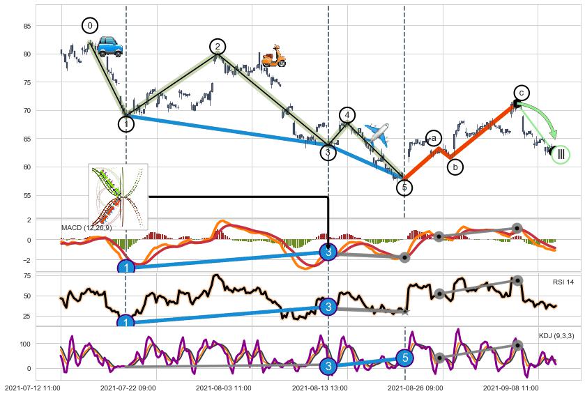 ➢ 1,3,5驱动浪MACD, RSI, KDJ走势都出现【常规背离】反转信号增强