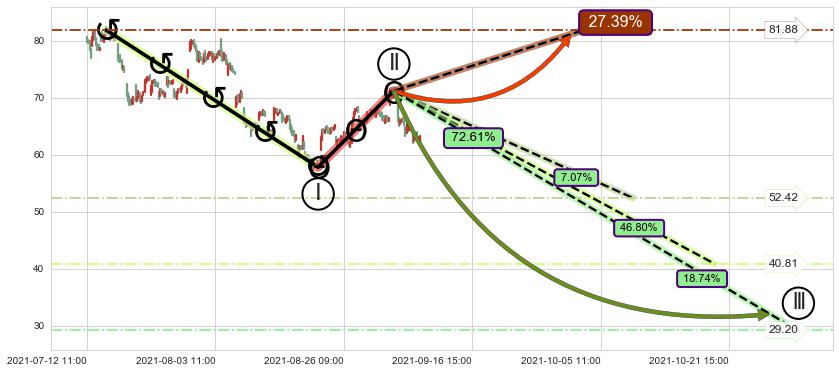 ➣ 调整浪已超过预测的c点位置,后续大趋势循环浪继续下跌概率72.61%,谨慎做多