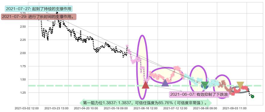 2021-06-22: 第一阻力位1.3837有效抑制了下跌浪,成功阻止了价格的继续下跌。