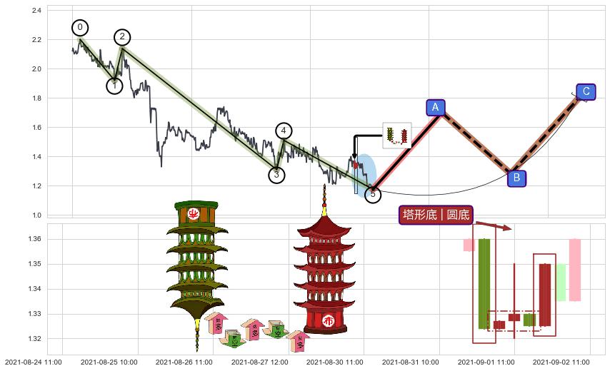 | 9 🅚:塔形底 | 圆底 ➕ ☯️:缠论中枢点下降缠中枢AB形成后猜想拐点1买即将出现,随后猜想后续持续拉升(均值回复) ☞ 看多信号 ⇥ 【🅚线】交织【图形】⇥ 综合量化分数: 51 | > |
