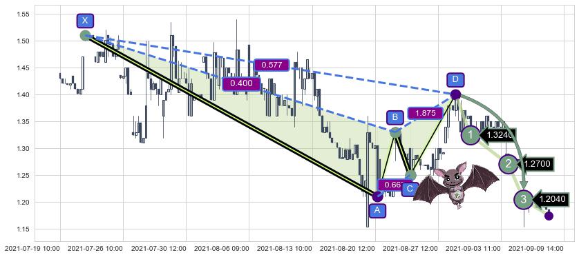 ➣ 已完成【蝙蝠】形态起点X: 07-21:09, 终点D: 08-30:13, 共148交易小时