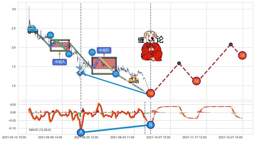 | 2 🅚:【高山滑雪】买入点 ➕ ☯️:缠论中枢点下降缠中枢AB形成后猜想拐点1买即将出现,随后猜想后续持续拉升(均值回复) ☞ 看多信号 ⇥ 【均线】交织【图形】⇥ 综合量化分数: 51 | > |