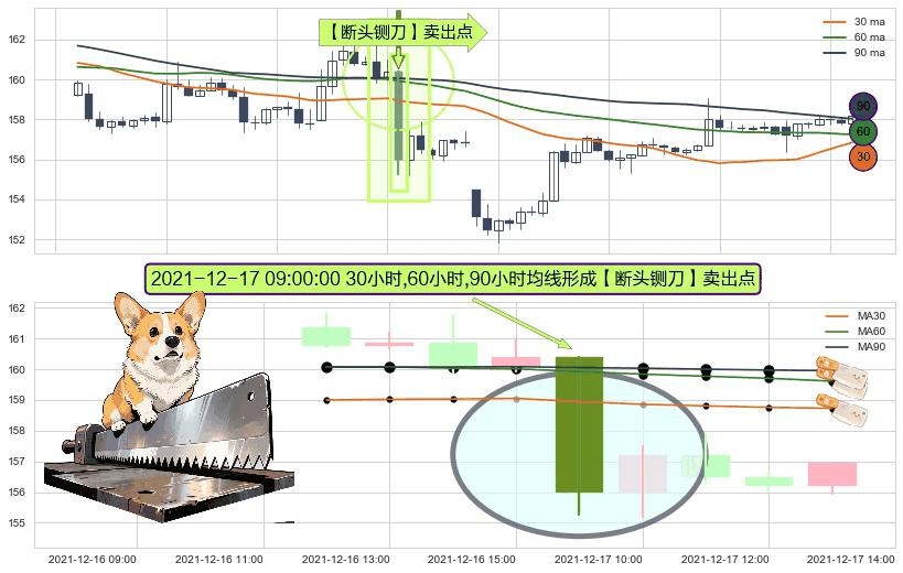 形态多维评估: ⚀ 2021-12-17 09:00:00小时显现 30小时-60小时-90小时均线 【断头铡刀】卖出点 看空信号,后市看跌,卖出