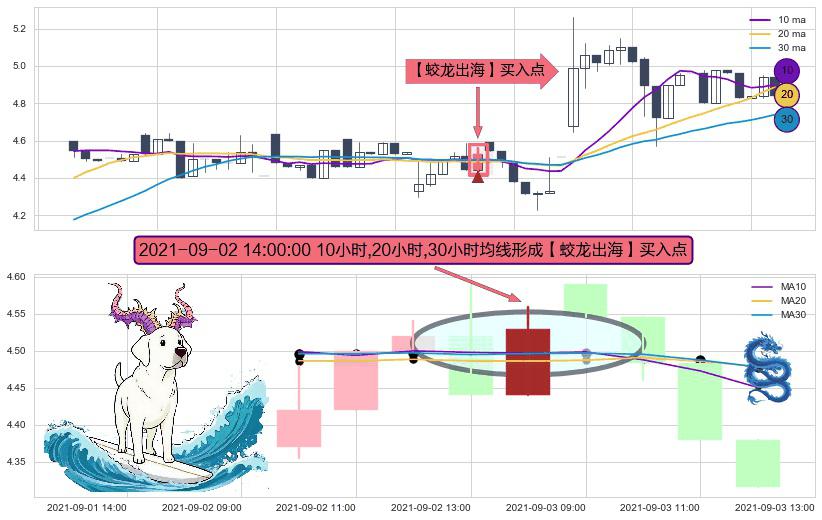⚀ 2021-09-02 14:00:00小时显现 10小时-20小时-30小时均线 【蛟龙出海】买入点 看多信号,后市看涨,买入