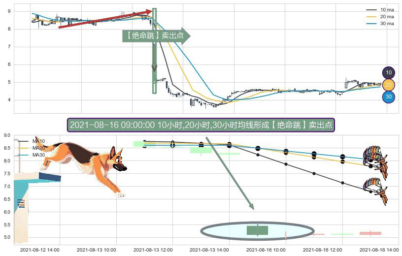 ⚀ 2021-08-16 09:00:00小时显现 10小时-20小时-30小时均线 【绝命跳】卖出点 看空信号,后市看跌,卖出