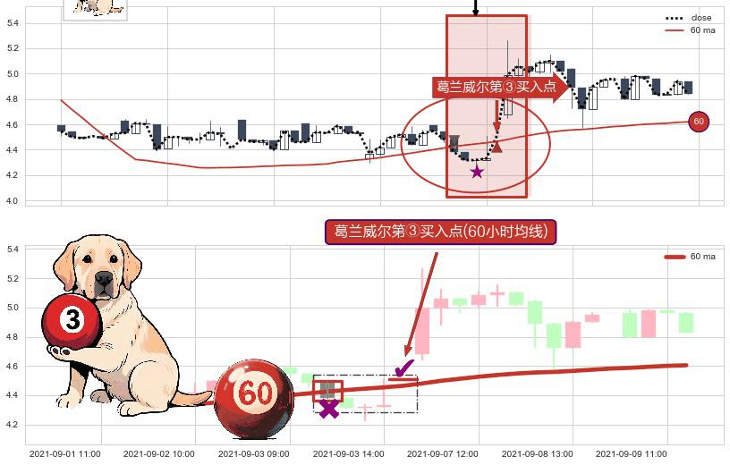 ⚀ 2021-09-03 15:00:00-小时显现 葛兰威尔均线 60小时均线 第③买入点 上升趋势的中继信号,后市看涨,买进信号