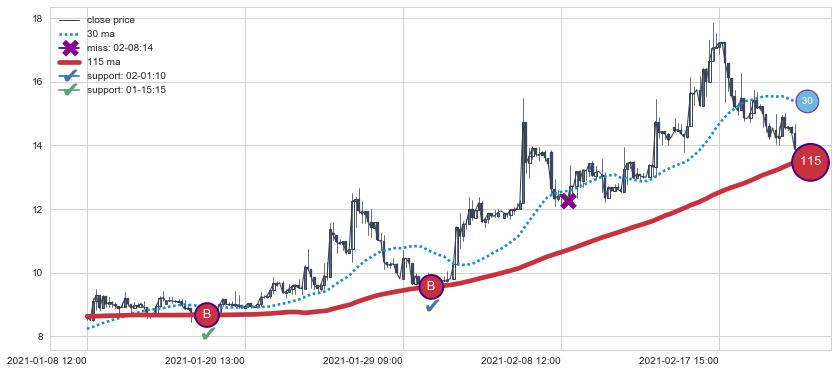 ⚄ 均线向下破位后价格围绕均线附近波动,并未远离均线,再次向上突破后维持原均线上涨趋势【极强】