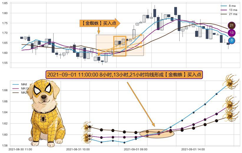 ⚀ 2021-09-01 11:00:00小时显现 8小时-13小时-21小时均线 【金蜘蛛】买入点 看多信号,后市看涨,买入