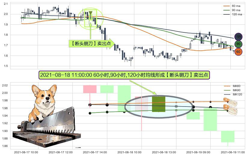 ⚀ 2021-08-18 11:00:00小时显现 60小时-90小时-120小时均线 【断头铡刀】卖出点 看空信号,后市看跌,卖出