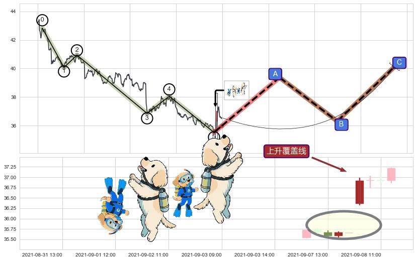 | 5 🅚:底部尽头线(上山虎) ➕ 🌊:波浪理论猜想下跌浪5已形成,猜想后续形成abc反弹上涨(均值回复) ☞ 看多信号 ⇥ 【🅚线】交织【图形】⇥ 综合量化分数: 59 | > |