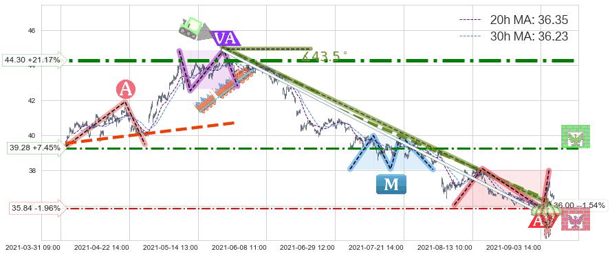 ♘ 阻力价格位44.30,可信任强度94.76%,距离最后交易2021-09-09 14:00形成的收盘价格36.56相差 +21.17%