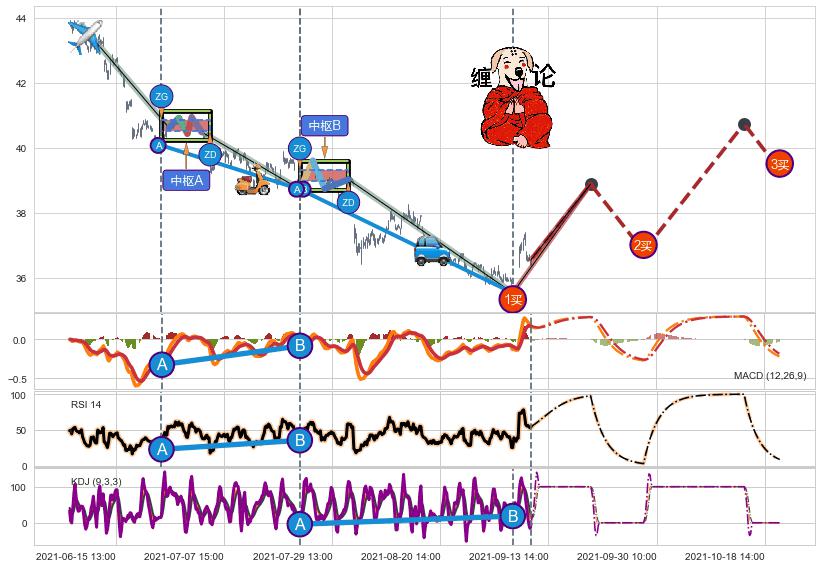 | 14 🅚:早晨之星(黎明之星) ➕ ☯️:缠论买卖点下降缠中枢AB形成后猜想拐点1买已到达,猜想后续持续拉升(均值回复) ☞ 看多信号 ⇥ 【🅚线】交织【图形】⇥ 综合量化分数: 51 | > |