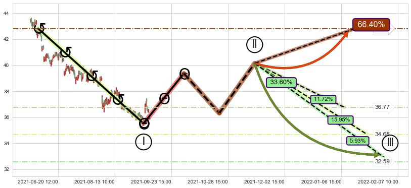 ➣ 大趋势循环浪继续向下概率33.60%