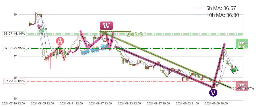 ♘ 阻力价格位37.38,可信任强度80.39%,距离最后交易2021-09-09 14:00形成的收盘价格36.56相差 +2.25%