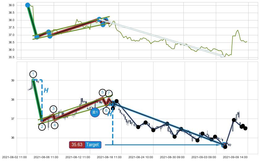 ➣ 最小中继整理跌幅→𝐇: 2.165 (𝐇旗杆的长度:旗杆起点→顶点)