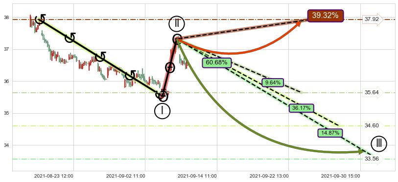 ♘ 阻力价格位38.07,可信任强度70.00%,距离最后交易2021-09-09 14:00形成的收盘价格36.56相差 +4.14%