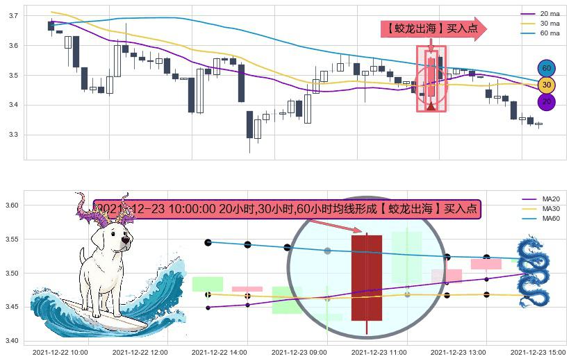 形态多维评估: ⚀ 2021-12-23 10:00:00小时显现 20小时-30小时-60小时均线 【蛟龙出海】买入点 看多信号,后市看涨,买入
