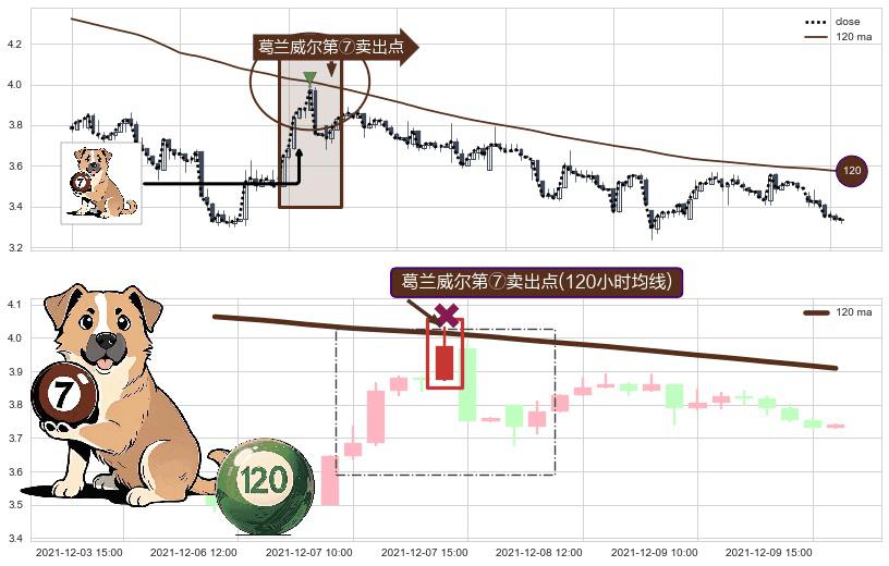 形态多维评估: ⚀ 2021-12-07 14:00:00-小时显现 葛兰威尔均线 120小时均线 第⑦卖出点 下降趋势的中继信号,后市看跌,卖出信号