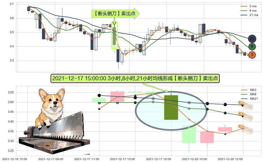 形态多维评估: ⚀ 2021-12-17 15:00:00小时显现 3小时-8小时-21小时均线 【断头铡刀】卖出点 看空信号,后市看跌,卖出