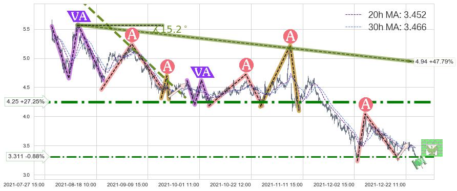♞ 20小时均线:3.452,30小时均线:3.466→ 快线<慢线