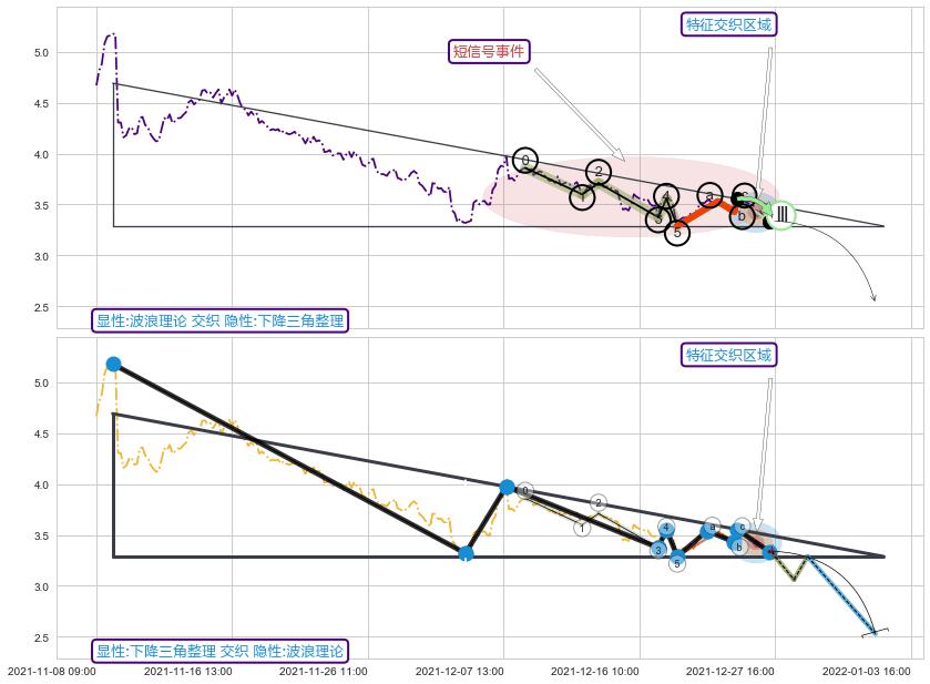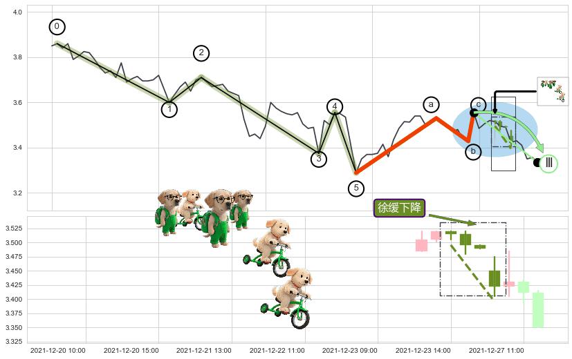 ➢ 最后的下跌趋势2021-11-19 14:00至2021-12-21 12:00:存在突破迹象,后续小反弹或者反转上涨