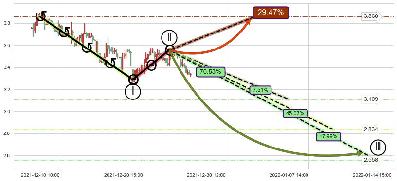 ➢ AI预测: 假定反转如期而至,第❶价格目标位置(12-28:12, 3.419)