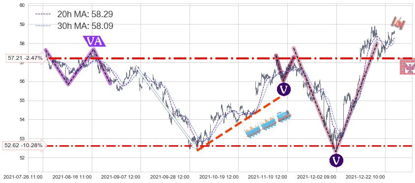 ♞ 20小时均线:58.29,30小时均线:58.09→ 快线>慢线