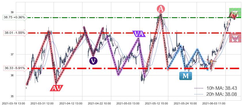 ♘ 阻力价格位38.75,可信任强度55.43%,距离最后交易2021-06-04 14:00形成的收盘价格38.61相差 +0.36%