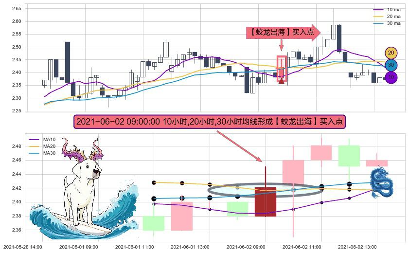 ⚀ 2021-06-02 09:00:00小时显现 10小时-20小时-30小时均线 【蛟龙出海】买入点 看多信号,后市看涨,买入