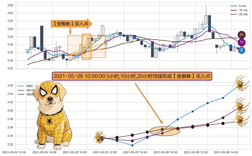 ⚀ 2021-05-26 10:00:00小时显现 5小时-10小时-20小时均线 【金蜘蛛】买入点 看多信号,后市看涨,买入