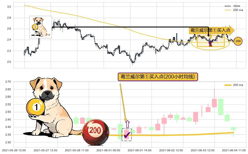 ⚀ 2021-06-01 10:00:00-小时显现 葛兰威尔均线 200小时均线 第买①入点 走势反转见底信号,后市看涨,买进信号