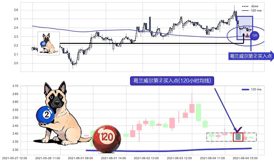 ⚀ 2021-06-04 13:00:00-小时显现 葛兰威尔均线 120小时均线 第②买入点 上升趋势的中继信号,后市看涨,买进信号
