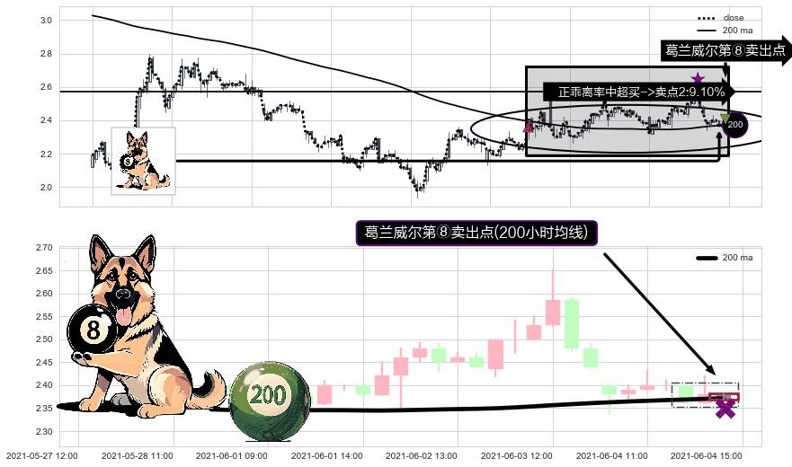 ⚀ 2021-06-04 15:00:00-小时显现 葛兰威尔均线 200小时均线 第⑧卖出点 下降趋势的中继信号,后市看跌,卖出信号