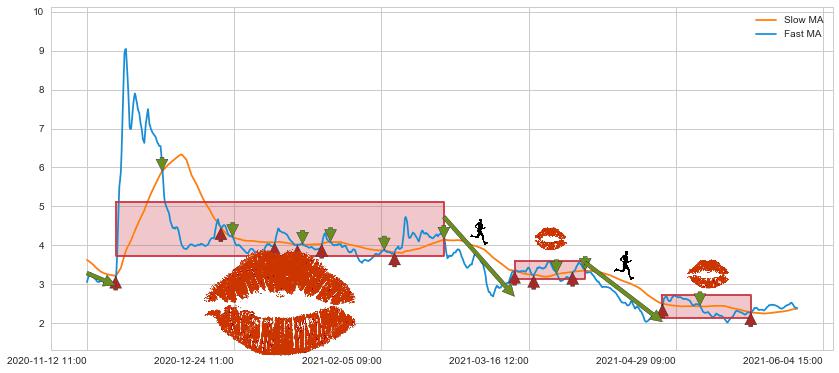 04-26 11:00至05-20 14:00 慢线与快线多次接触,存在上下穿越,有缠绕