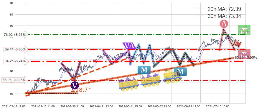♘ 阻力价格位76.02,可信任强度57.58%,距离最后交易2021-07-19 15:00形成的收盘价格70.02相差 +8.57%