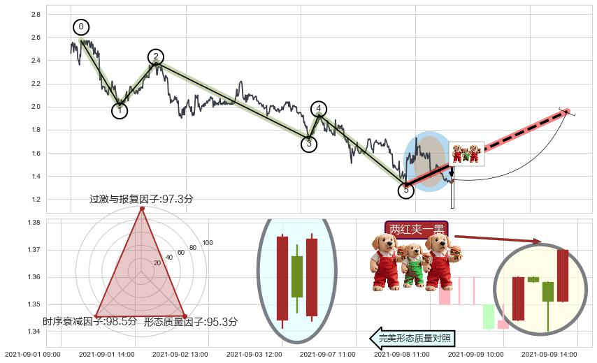 | 3 🅚:下跌两颗星 | 下跌三颗星 ➕ 🎢:【死亡谷】卖出点均线组合卖出点信号形成后,猜想后续破位下跌,沿着向下的尖头三角下跌 ☞ 看空信号 ⇥ 【均线】交织【🅚线】⇥ 综合量化分数: 35 | > |