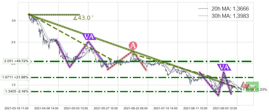 ♘ 阻力价格位2.051,可信任强度91.40%,距离最后交易2021-09-09 14:00形成的收盘价格1.3700相差 +49.72%