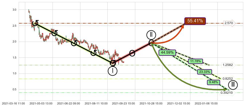➢ 循环浪继续向下【最高】位置(12-28:11, 1.2582),匹配聚类样本比例26.41%, 可能性概率11.78%