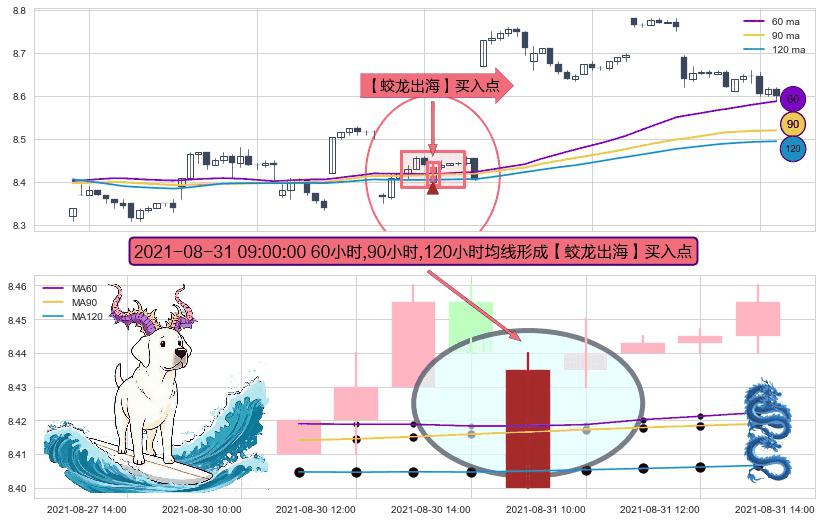 ⚀ 2021-08-31 09:00:00小时显现 60小时-90小时-120小时均线 【蛟龙出海】买入点 看多信号,后市看涨,买入
