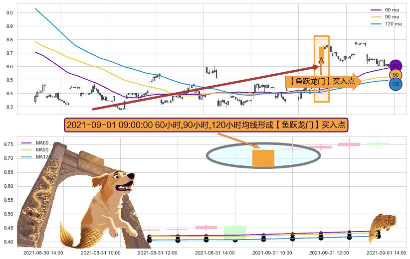 ⚀ 2021-09-01 09:00:00小时显现 60小时-90小时-120小时均线 【鱼跃龙门】买入点 看多信号,后市看涨,买入